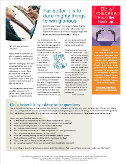 Now is the most important time to do a ‘checkup from the head up.’ Give yourself the Who, why, what, and where test. Who are you, Why do you… etc. Realign your self and your goals by re-identifying them and updating your choices and strategy in life. How? Ask better questions.