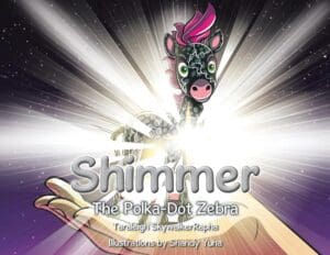 Based on a true-life event, a polka-dot zebra was born in 2019 on the Masai Mara National Reserve in Kenya. Polka-dots being born into a world of stripes–an oddity that has never been seen before. Shimmer is about a zebra that doesn’t even know if she is a real zebra if she doesn’t have stripes like everyone else. She doesn’t fit in and is teased and bullied mercilessly until she eventually forgets her own name. One day a group of bullies push her off a cliff into a muddy bog, where she becomes stuck and comes face-to-face with Blamey, a gigantic crocodile. Blamey refuses to eat Shimmer because she “doesn’t have stripes,” which causes Shimmer to burst into tears that she is not even good enough to be eaten. Blamey, with the help of his flamingo and firefly friends, teaches Shimmer what she is really made of and what really counts. What was seemingly the worst day of Shimmer’s life transforms her.